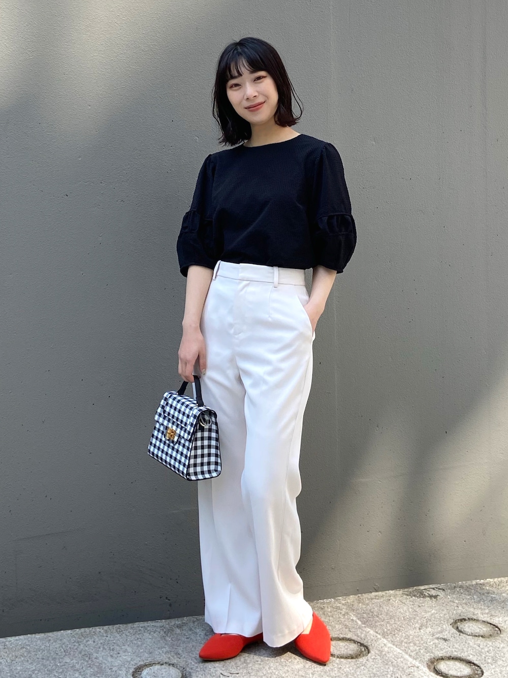 RINA 158cm モノトーンでまとめて、シューズのオレンジでアクセントを効かせました🧡🍊 今年のトレンドカラーを取り入れると 一気に旬顔コーデが完成するのでおすすめです◎