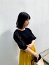 RINA 158cm ブラック×イエローで大人カジュアルに♫ トップスの袖の透け感が涼しげで 夏っぽさをプラス◎