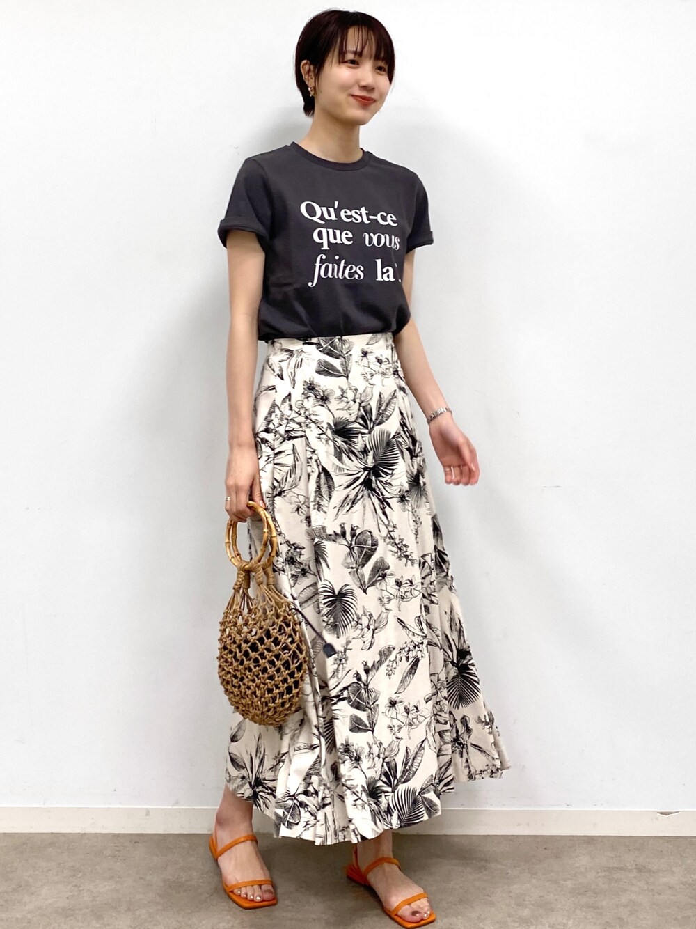 sachiko 174cm コーディネートの主役になるボタニカル柄がポイントのスカート。 一気にコーデに華やかさをプラスしてくれ、お出かけシーズンにピッタリ◎ ロゴのTシャツを合わせてラフで カジュアルなコーデに。 shoes:C71-24014 公式HPの検索🔍からご覧いただけます