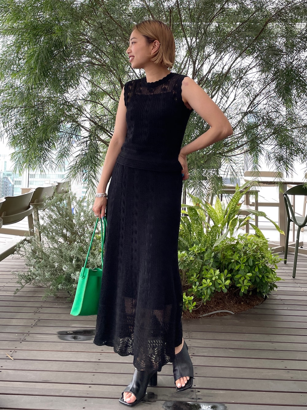 Haruka 159cm クロシェ編みがポイントのニットとマーメイドスカートで セットアップコーデ! オールブラックで大人っぽくし、 ちらっと見えるグリーンが可愛いバッグを差し色に! 公式HPの検索🔍からご覧いただけます☑︎ bag : C7114047 Instagram >> @haruka_ishizawa ぜひチェック・フォローお願いします♡