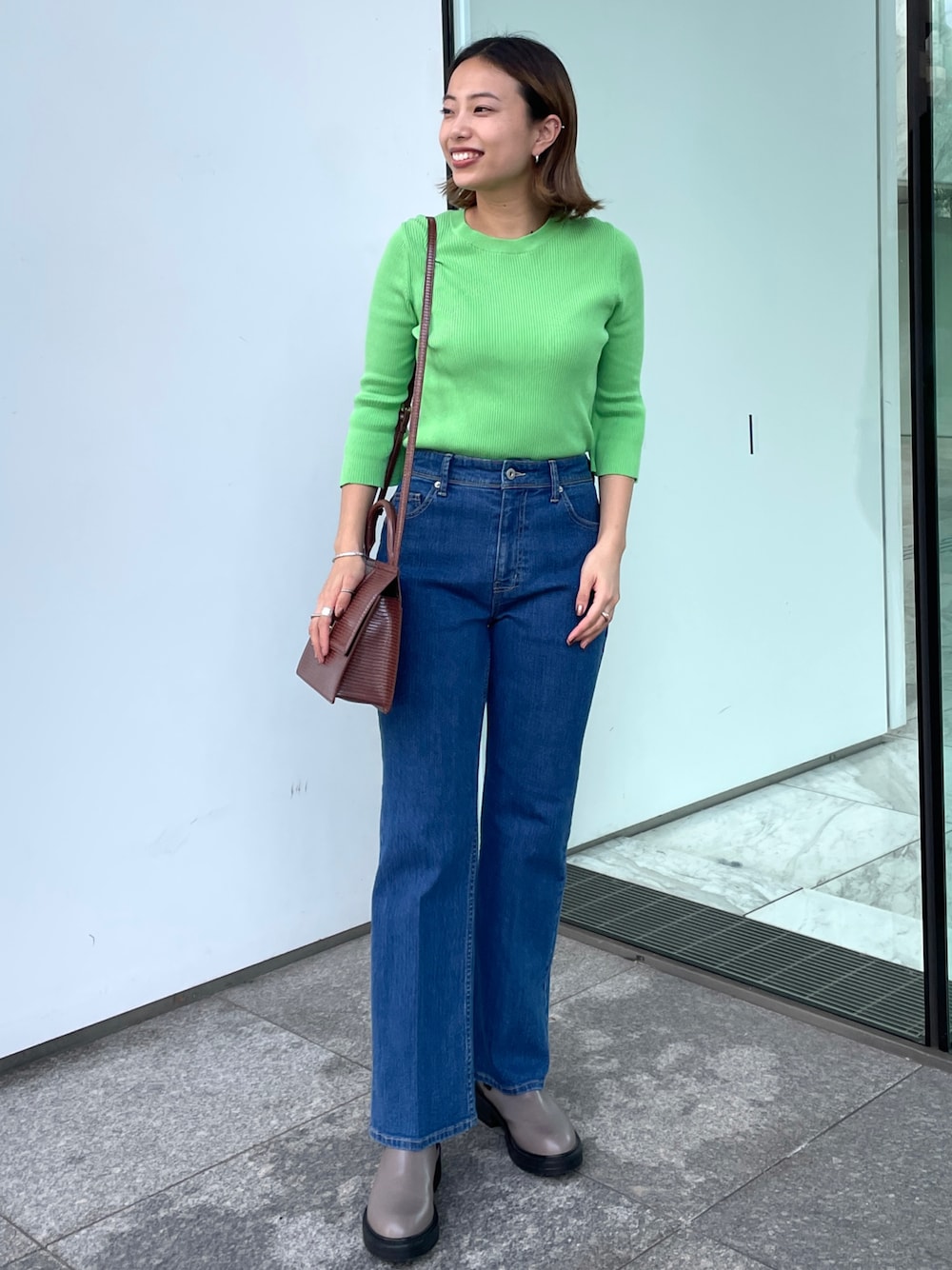 Haruka 159cm フレアスリーブがポイントのニットにレースアップデザインが可愛いフレアデニムで大人カジュアルコーデ。 ライトグリーンにブルーのデニムで明るく、小物はブラウンで秋らしさもプラス。 Instagram >> @haruka_ishizawa ぜひチェック・フォローお願いします♡