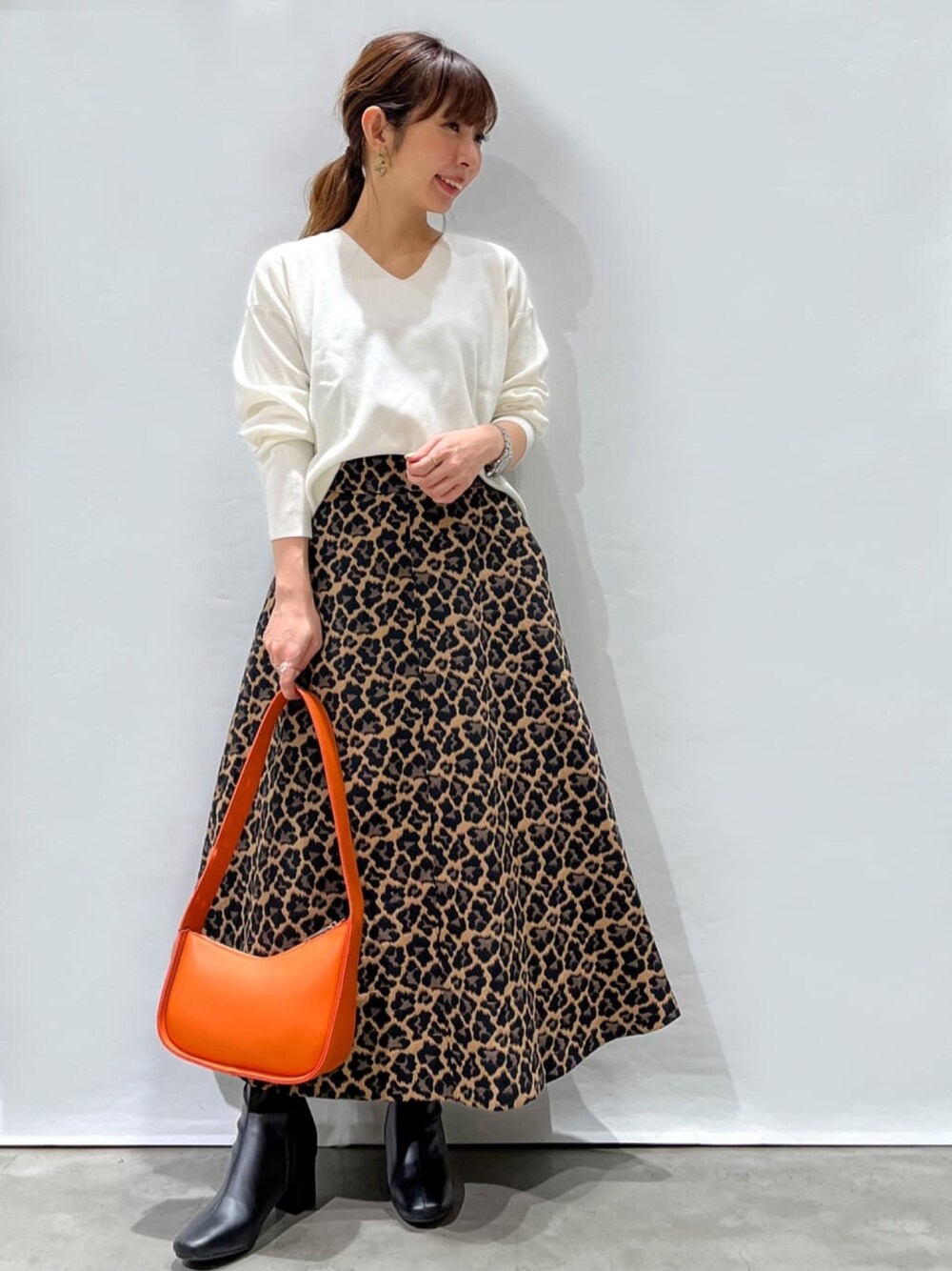 じゅん 150cm 伸縮性があり、とても着やすいVネックニット。 張りのある素材感とほどよくゆとりのあるシルエットで、体のラインを拾わず着れます。 レオパード柄のスカートは、素材に張り感があり綺麗なシルエットを保ちながら履けます♪ とてもおしゃれな印象に仕上がるのに、体型カバー力も◎