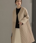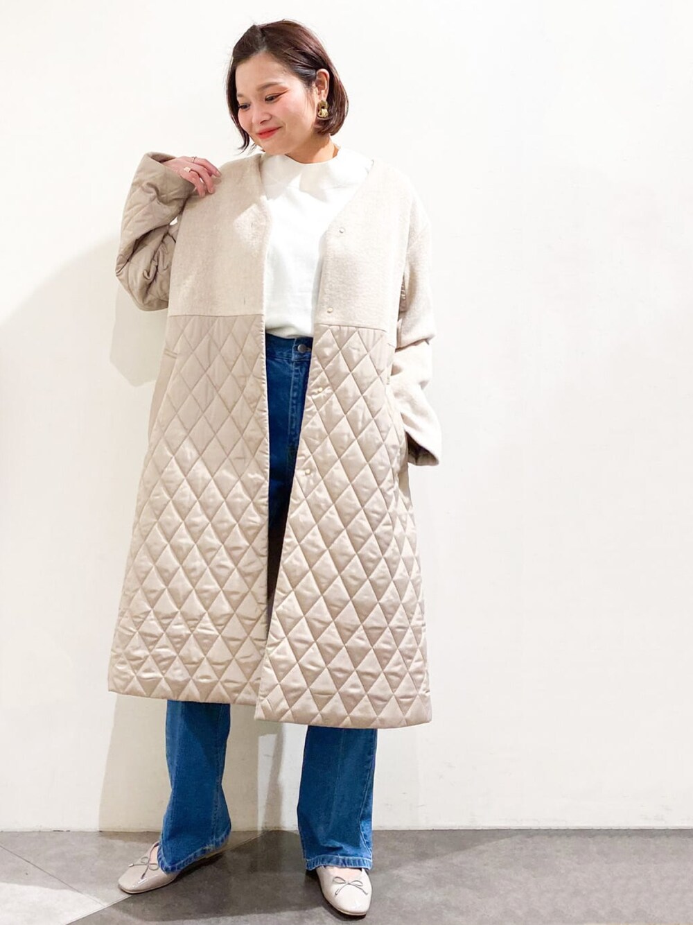 たわわ 154cm 今季人気の高いキルティングの切り替えのコートです♪ ゆったりめのシルエットで肩も少し落としてあり、大人なリラクシー感が楽しめます。 ウールとカシミヤの混合された上質な素材で、着用した感じも滑らかで暖かみがありますね。 素材切り替え位置が少し高めのため、ハイウエスト効果があるのもポイント◎ 今季いちおしのアウターです。