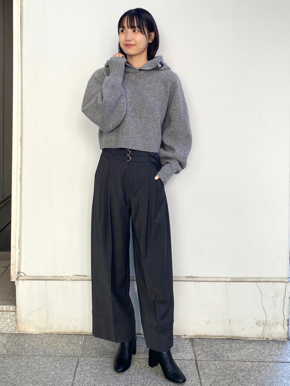 sachiko グレーワントーンのコーディネート。 ショート丈のニットにワイドシルエットが魅力なパンツを合わせてモードな印象に