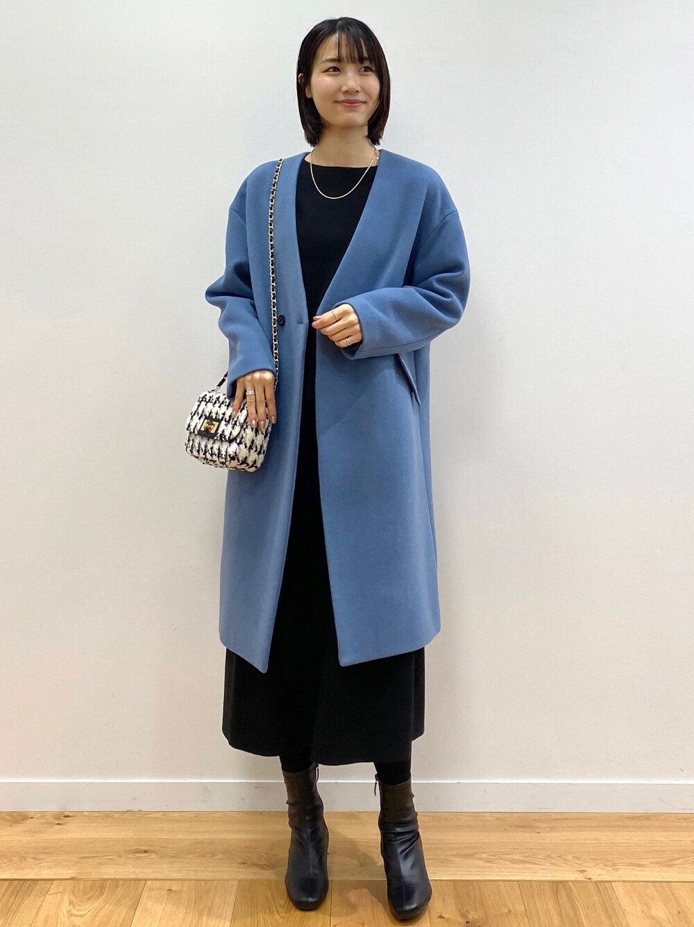 sachiko 174cm セットアップにブルーのコートを合わせたきれいめおでかけコーディネート リラクシーな着心地が魅力です。