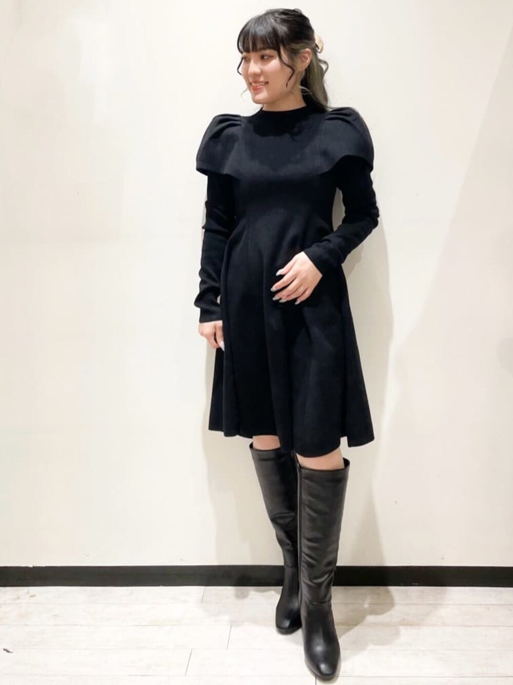 OPAQUE.CLIPスタッフ(OPAQUE.CLIP)のワンピース「◆ケープデザインニットミニワンピース」を使ったコーディネート