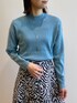 sachiko 174cm ハイネックの程よいシルエットのトップス 丈が長めですが程よい生地の厚みなので、インスタイルもきれいに決まります! 爽やかなブルーカラーが春まで着られます◎ フレアスカートと合わせてお出かけスタイリングに。