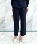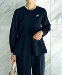 sachiko 174cm ◼︎ネイビーのセットアップスタイリング ◻︎ペプラムブラウス 華やかなペプラムデザインは、広がりすぎず上品な印象に仕上がります。 後ろの丈が少し長く、ヒップにかかる丈感なので程よく体型カバーにもなります◎ ◻︎ワイドパンツ セットで着られるワイドシルエットのパンツ。きれいにすらっと見せてくれるセンタープレスが入っており、足のラインを強調しないワイドシルエットが嬉しいです♪ 通勤からハレの日まで活躍するアイテムです!