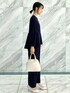 sachiko 174cm ◼︎ネイビーのセットアップスタイリング ◻︎ペプラムブラウス 華やかなペプラムデザインは、広がりすぎず上品な印象に仕上がります。 後ろの丈が少し長く、ヒップにかかる丈感なので程よく体型カバーにもなります◎ ◻︎ワイドパンツ セットで着られるワイドシルエットのパンツ。きれいにすらっと見せてくれるセンタープレスが入っており、足のラインを強調しないワイドシルエットが嬉しいです♪ 通勤からハレの日まで活躍するアイテムです!