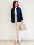 OPAQUE.CLIPスタッフ(OPAQUE.CLIP)のノーカラージャケット「◆DELEGANT コットンツイードミドルジャケット【OPAQUE.CLIP NAVY】」を使ったコーディネート