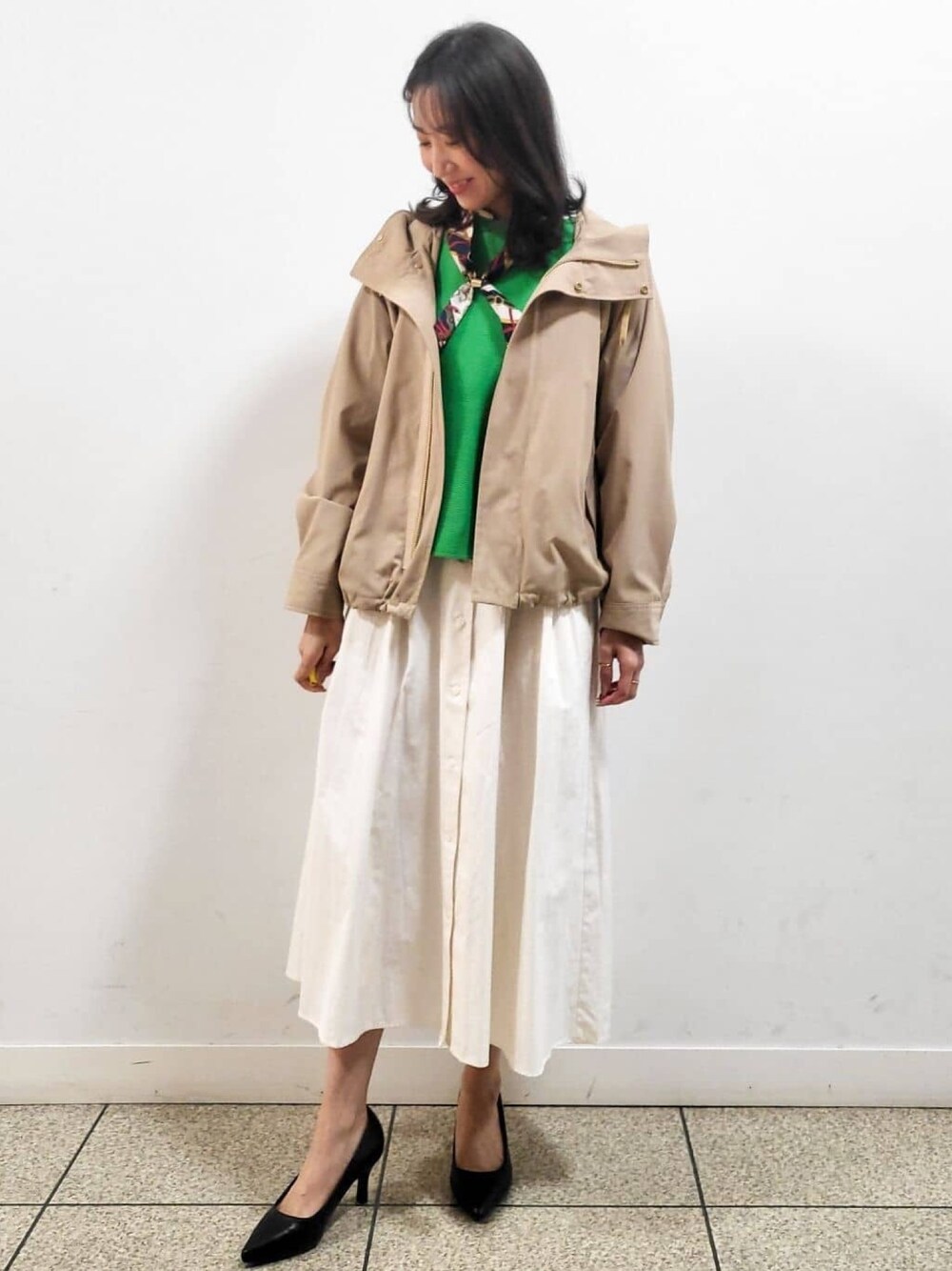 あや 160cm グリーンを差し色に春らしい コーディネートにしてみました。 ニットは紫外線を通しにくくしてくるのでこれからの時期に嬉しいですね✨