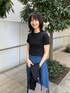 sachiko 174cm 大人カジュアルコーデ ブラックのアンサンブルで着用可能なTシャツとカーディガン。 スナップボタンがシルバーで大人上品な印象に。 ネイビーのスカートで軽やかさをプラス。 落ち感のある素材で動く度素敵です。 長めの丈感なので、高身長さんも安心ですよ。