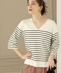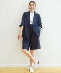 aya 151cm 全てMサイズ着用。 ボーダーニットに麻混のジャケットを合わせてマリンスタイルに。 ヒール合わせでカジュアルすぎないよう女性らしさをプラスしました。 全て程よくゆったりとしたサイズ感。 パンツはベルト付きで調整可能&裾にドローコードも付いているので地面につくことなく、低身長でも安心です。