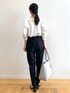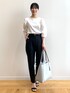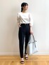 RINA 158cm 骨格ウェーブ/ブルベ 袖コンシャスな通勤コーデ♪ ボリューム感のあるジゴ袖デザインがトレンドで目を惹くポイントです! ハリ感のある布帛に切り替えていて、合わせるボトムによっては表情が変わるので、通勤から休日コーデまで幅広く使えます! パンツはとにかくサラッとしている生地で、スッキリ着られました! 足に自信がない私でも美脚に見えるシルエットです!