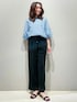 ともも。 158cm ストライプのブラウスで爽やかな印象に。 袖のボリューム感が華やかで、二の腕も自然とカバーしてくれるブラウス♪ センタープレス入りでストンとしたシルエットのパンツは、カジュアルになり過ぎずキレイめにも使えます。 ウエストがゴム仕様でストレッチの効いた素材で、快適な軽い履き心地です♪ 膝の曲げ伸ばしもラクに出来ます。