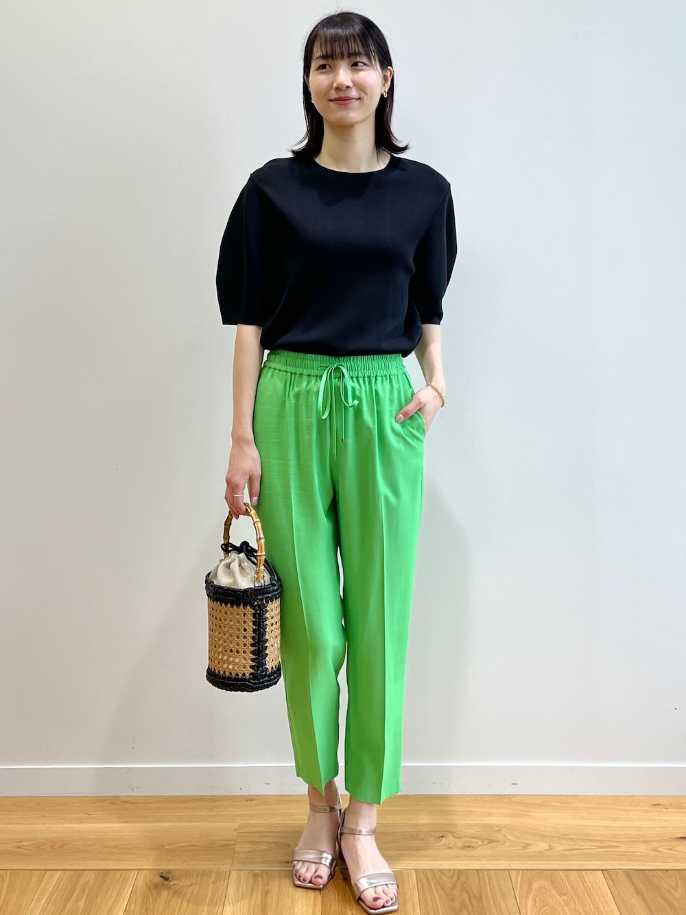sachiko 174cm 骨格ナチュラル / ブルベ冬 袖がパフスリーブになっている五部袖ニットは、 程よいデザイン性で通勤からお出かけまで幅広いシーンで活躍する1枚です! 程よく首が詰まっていて1枚で安心、 着心地もとても快適でした◎ カラーパンツを主役に! 鮮やかなグリーンカラーがコーデのポイントに。 ウエストゴムで楽ちん見えしつつ、センタープレスできれいめにも着られます。 生地もさらっとしていてはき心地抜群です!