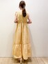 aya 157cm 黄色が映えるロングワンピースはお出掛けコーデにオススメです♪ 肩の可愛らしいリボンは結び方で肩幅を調整できるので、もう少し幅が欲しい方は腕にかかる程に調整して頂けます! 後ろウエストにはゴムが入っており、締め付け感もないので楽な着心地です! カーディガンは肩掛けや羽織りとしても様々なシーンで着回しができます!