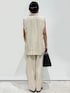 yuka.a 159cm コーディネートにプラスするだけで、グッとオシャレに見せてくれるテーラードジレです^ ^! セットアップのワイドパンツとあわせてスタイリッシュにコーディネートしました^ ^! 上下ともにさらっとした生地で暑くなる時期にも着心地良く、あえてワンサイズ大きくゆったりとリラクシーなこなれ感が出るように着用しました。 元々ややゆとりのあるシルエットなので、よりキレイめ感を出したい場合などは通常のサイズをお選び頂くのがオススメです。 インナーをブラウスなどにすると更にお仕事にもピッタリなキレイめコーディネートになるので、ONとOFFのどちらにもお使い頂ける、組み合わせが楽しめるセットアップアイテムです^ ^! 今回はフレンチスリーブのカットソーを合わせてジレから袖を出さずに、よりカッコよく^ ^! カットソー生地で着心地◎ですが、キレイなツヤがあるのでカジュアルになりすぎないのがポイントです!