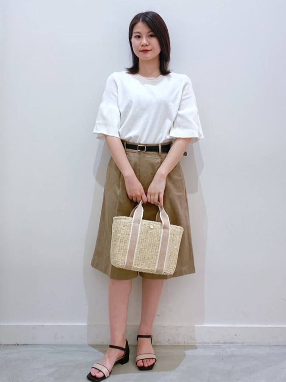 suzuka 155cm フリルスリーブのニットは5分袖丈でシーズン長く着用頂けます! 抗ピリング昨日で毛玉になりにくい素材です!! 麻混ハーフパンツと合わせてキレイめカジュアルに!