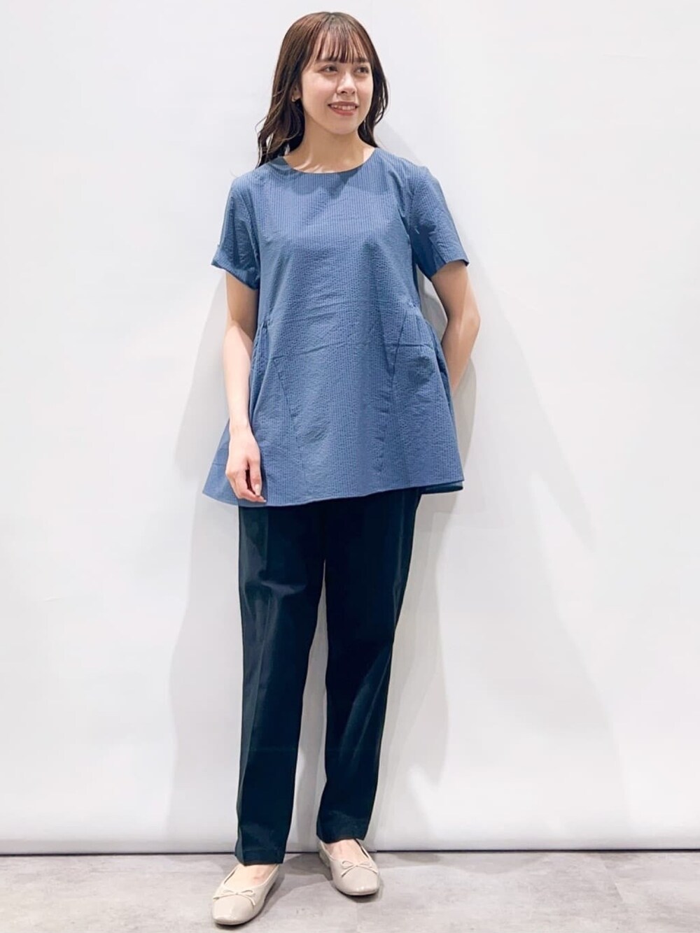 あやな 157cm 着用サイズ¦Mサイズ トップス 前はスッキリと脇から後ろはティアードデザインで表情が変わる、ペプラムブラウスです♪ 腰回りをカバーできる丈感で、パンツとの相性も◎ ブラウスですが、少しストレッチが効いているので 脱ぎ着もしやすかったです^^ パンツ 人気のベイカーパンツ♪ スッキリとしたシルエットで、ボリュームのあるトップスと合わせてもバランスが良いです! ストレッチが効いているので動きやすいです!