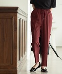 yuka.a 159cm 【サイズ感】 トップス:Mサイズ着用でゆとりのあるAラインシルエットでした。 胸下からの切り替えでふんわりとお召し頂けます! パンツ:159cm・Sサイズのいつものサイズ着用でジャストサイズでした。 太ももにゆとりありで、そこから細くなっていくテーパードシルエットが美脚見えを叶えてくれます。 【素材感・着心地】 トップス:フハクとスムースカットソーのドッキングシリーズのNEWデザイン!! キレイなツヤ感が高見えで、肌あたりも◎です^ ^ パンツ:さらっと履ける長くお使い頂ける素材なので、暑い時期から秋深くまで長くお召し頂けます。 ストレッチが効いていてウエストがゴムなので快適な着心地です^ ^ 【おすすめポイント】 サイドから後ろにかけてのフハク素材のディアードデザインが大人かわいいトップス^ ^! 前はカットソーでスッキリした計算されたシルエットでおしゃれに体型カバーも叶います^ ^ 【コーディネートのポイント】 暑さの残る晩夏でも、秋らしさは取り入れたい! そんな時はお色で季節感をプラスするのがオススメです^ ^! 足元もヒールが素敵なデザインのパンプスで脱サンダル!にしました^ ^