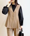 ともも。 158cm 【サイズ感】 トップス:Mサイズでゆったり着れます。 158センチで腰が隠れる丈感です。 襟の空きが狭いので、お仕事でも気にせず使えます。 ジレ:ヒップがしっかり隠れます。 袖の空きが広いのでニットインしてもキレイに着れます^ ^ ボトム:ウエストの後ろがゴムになっていて締め付け感なく着れます。 丈は身長158cm・Mサイズ着用。足首が見える丈でフラットシューズともバランス良く着れます。 【素材感・着心地】 トップス:コットン素材で、チクチク感なく着れます^ ^ ガーター編みで、ピラっとせず程よい肉厚で、身体のラインを拾わずに着れます♪ ジレ:ポリエステル素材で、サラッとした触り心地です。 ストレッチ素材で、着脱もラクに出来ます^ ^ ボトム:ストレッチ素材で、立ったり座ったりもしやすいです♪ ポリエステル素材で、サラッとした肌触り。 まとわり付くことなく着れます^ ^ ウエストも後ろがゴム仕様で締め付け感がないです。 【おすすめポイント】 トップス:程よい肉厚で、秋口に使いやすい素材感♪ 控えめなパフスリーブで、お仕事から普段づかいもしやすいデザイン!! ジレ:ペプラムデザインが、着るだけでトレンド感◎な上に、体型カバーにもなる嬉しいアイテム^ ^ ボトム:裾がヘムデザインになっていて、美脚◎なパンツはカラー違いでも欲しくなるアイテム! ストレッチ素材で、動きやすいので出歩く日にもオススメです^ ^ 【コーディネートのポイント】 セットアップで合わせて、モードな雰囲気に。 シューズをレオパード柄にして秋らしいコーディネートにまとめました。