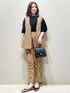 ともも。 158cm 【サイズ感】 トップス:Mサイズでゆったり着れます。 158センチで腰が隠れる丈感です。 襟の空きが狭いので、お仕事でも気にせず使えます。 ジレ:ヒップがしっかり隠れます。 袖の空きが広いのでニットインしてもキレイに着れます^ ^ ボトム:ウエストの後ろがゴムになっていて締め付け感なく着れます。 丈は身長158cm・Mサイズ着用。足首が見える丈でフラットシューズともバランス良く着れます。 【素材感・着心地】 トップス:コットン素材で、チクチク感なく着れます^ ^ ガーター編みで、ピラっとせず程よい肉厚で、身体のラインを拾わずに着れます♪ ジレ:ポリエステル素材で、サラッとした触り心地です。 ストレッチ素材で、着脱もラクに出来ます^ ^ ボトム:ストレッチ素材で、立ったり座ったりもしやすいです♪ ポリエステル素材で、サラッとした肌触り。 まとわり付くことなく着れます^ ^ ウエストも後ろがゴム仕様で締め付け感がないです。 【おすすめポイント】 トップス:程よい肉厚で、秋口に使いやすい素材感♪ 控えめなパフスリーブで、お仕事から普段づかいもしやすいデザイン!! ジレ:ペプラムデザインが、着るだけでトレンド感◎な上に、体型カバーにもなる嬉しいアイテム^ ^ ボトム:裾がヘムデザインになっていて、美脚◎なパンツはカラー違いでも欲しくなるアイテム! ストレッチ素材で、動きやすいので出歩く日にもオススメです^ ^ 【コーディネートのポイント】 セットアップで合わせて、モードな雰囲気に。 シューズをレオパード柄にして秋らしいコーディネートにまとめました。