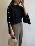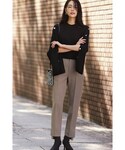 sachiko 174cm 骨格ナチュラル / ブルベ冬 【スタイリングポイント】 2wayニットは、ボタンを開けてポンチョ風に。モカカラーパンツで秋らしいスタイリングに。 【おすすめポイント】 アクセいらずのニットは、シルバーボタンが1番のポイント。 お好みでボタンの開け具合を調節してコーディネートを楽しめます◎ 短い丈感でウエスト位置を高く見せられます! パンツは裾が前後差のあるデザインでローファーやブーツと合わせやすいです。 【サイズ感】 Mサイズで手首にかかる袖の長さです。 丈は短めですっきりとした印象です。 パンツはMサイズでちょうどいいサイズ感でした。 【着用感】 上下とも締め付け感なく着心地も快適でした◎