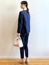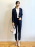 sachiko 174cm 骨格ナチュラル / ブルベ冬 【スタイリングポイント】 通勤から学校行事まで使えるセットアップシリーズ。バッグと靴のカラーを合わせて統一感を意識しました。 【おすすめポイント】 ジャケットのパールボタンデザインが、アクセいらずで程よく華やかで上品な印象に。 パンツはシルエットがきれいなうえ、履き心地快適な優秀アイテムです! 【サイズ感】 全てMサイズ着用。 ジャケットは手首にかかるかかからないかくらいの長さでした。肩幅もジャスト。 高身長さんはワンサイズあげての着用もおすすめです! パンツはくるぶしがしっかりと見えるすっきりとした丈感でした。 【着用感】 ストレッチが効いているので着心地快適です◎ 学校行事やお仕事のシーンにも締め付けなどのストレスがかかりにくいのが嬉しいです♪
