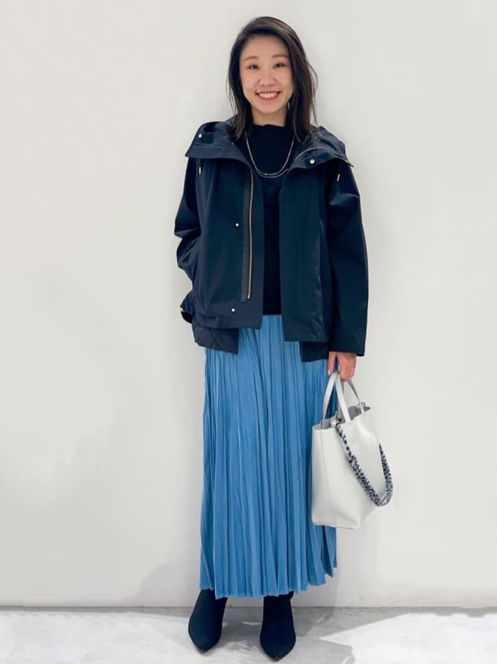 yuka.a 159cm 【サイズ感】 ジャケット:Mサイズでゆったりとしたサイズ感でした。 裾のドローコードでシルエットが調整可能になっています。 トップス:ゆったりしたシルエットのニットです。 ボートネックなので女性らしく上品な印象で、ボクシーなシルエットとのバランスも◎です。 ボトムにインでもアウトでも合わせやすい丈で、後ろ側はラウンド型で少し長くなっているのもポイントです。 スカート:長さはしっかりめで、159cmで足首上くらいの丈です。 ストンとした広がらないシルエットなので重たくならず、すっきりとお召し頂けます。 【素材感・着心地】 ジャケット:ハリがありキレイなシルエットがキープできます。 程良く光沢のある生地で高見えします^ ^! 嬉しい機能付きでデイリー使いにぴったりです! トップス:エクストラファインメリノウール混で柔らかく肌あたりの良いニットです。 ウール混でありながらマシンウォッシャブル対応なのも嬉しいポイントです^ ^ スカート:滑らかで落ち感のあるフェイクスエード素材のお作りです。 動きに合わせて揺れる軽やかさが◎! やや光沢があるのでキレイめな印象です。 【おすすめポイント】 インに取り外しのできるキルティングのベストがついていて、ベストを上に重ねても、ベストだけ・パーカーだけでもと、4wayでお楽しみいただける大人気のマウンテンパーカーです^ ^