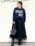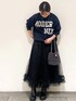 MIHO 154cm 《サイズ感》 トップス…Mサイズ着用でゆったりしています。 インナーを入れて重ね着も楽しめます。 着丈はやや長めですが、裾がリブなのですっきり着れます。 スカート…Mサイズ着用で、ウエストゴムで大きめのお作りです! ヒップまわりも程よいゆとりあり。 《素材感・着心地》 トップス…柔らかく、スウェット感覚で着られるロゴニットです。 生地もしっかりしているので暖かく着て頂けます。 スカート…軽やかで程よいハリ感がポイントのポリエステルチュール素材です。 軽い着心地ながら、華やかに見える着映えスカートです♪ 《おすすめポイント》 ロゴニットはスタイリングのアクセントに使いやすいです♪パンツでもスカートでも◎ スカートは締め付け感無く楽な着心地で、お腹やお尻など下半身の気になる所をカバーしてくれるので体型カバーにも◎ どちらもご家庭でお洗濯できます! 《スタイリングポイント》 全体をダークカラーでまとめて、ロゴの白をポイントにしました☆