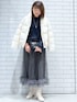 ku 165cm 【スタイリングポイント&着心地】 色を抑えた甘めのトップスとスカート 白のアウターで華やかにしました♪ 細部までこだわった軽くて温かいミュラーダウン是非HPご覧ください^ ^ 裾にかけてやや広がるAライン自然に腰回りをカバーしてくれます◎◎ 着丈前後差もあるので重たい印象にならず ドローコードでバランスをとれます♪♪♪
