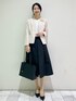 sachiko 174cm 骨格ナチュラル / ブルベ冬 【スタイリングポイント】 ベージュの上品ジャケットにスカートを合わせたセレモニースタイルに。 コサージュは、ジャケットと同色に。 小物はブラックで統一しました。 【おすすめポイント】 上品なキーネックデザインのジャケット。 マシンウォッシャブルでお手入れも簡単です◎ インナーをきれいに見せてくれるシルエットがポイント! ブラウスは、すっきりとしたバンドカラーにパール調ボタンが付いていてるデザインなのでアクセサリーいらずで華やかに♪ スカートは、タックデザインのフレアシルエットが素敵! バック部分がゴムになっているので着心地も快適です! 【サイズ感】 ジャケットは、Lサイズを着用。 肩周りはちょうどいいサイズ感でした。 ブラウスはMサイズでコンパクトなサイズ感。 スカートはLサイズでウエスト周りは大分ゆとりがありました。 膝がしっかりと隠れる丈感で立ち座りも安心です◎ 【着用感】 ブラウスはサラッとした生地感。 ジャケットも肌馴染みが良く着やすかったです! スカートは、バッグ部分がゴムになっていて履き心地快適です。