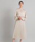 ユキ 152cm 〜大人フェミニンなセレモニースタイル〜 首元はハイネックになっている為ヒートテックが覗くことがなく安心して着用できます。 ペチコートを履いておりませんでしたが透け感気にならなかったです。 光沢がある生地はお顔写りも良くしてくれますし上品さも増します。 丈感は膝下十分な長さで淡いお色でも大人感忘れず着こなせますよ♪ ブローチはフェミニンなお色味、雰囲気に合わせてリボンモチーフにしました。