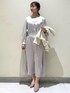 ユキ 152cm 〜大人フェミニンなセレモニースタイル〜 首元はハイネックになっている為ヒートテックが覗くことがなく安心して着用できます。 ペチコートを履いておりませんでしたが透け感気にならなかったです。 光沢がある生地はお顔写りも良くしてくれますし上品さも増します。 丈感は膝下十分な長さで淡いお色でも大人感忘れず着こなせますよ♪ ブローチはフェミニンなお色味、雰囲気に合わせてリボンモチーフにしました。