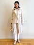 Haruka 159cm お仕事やセレモニーシーンにもおすすめ!ベージュのワントーンキレイめコーデ! 【サイズ感】 コート:すっきり着られてきちんと見えするサイジング ブラウス:体型カバーできる余裕あるサイジング パンツ:Mサイズでフルレングス。裾にかけて細くなるのですっきり見え 【素材感・着心地】 コート:固すぎないコットンとポリエステルのしっかりした素材。お仕事や、きちんとしたシーンにおすすめのシルエットと着心地です◎ ブラウス:しっかり厚みがあり、透け感もそこまで気にせず着られます! パンツ:ブラウスと同素材で着やすさ◎ジャケットもあるのでジャケットとセットで着ても◎ 【おすすめポイント】 体型カバーもできつつ、おしゃれ見えするペプラムブラウスはとても万能な1着です! 【スタイリングポイント】 ワントーンで組んだキレイめスタイル。ネックレスやブローチをしてワンポイント足すのもおすすめです◎