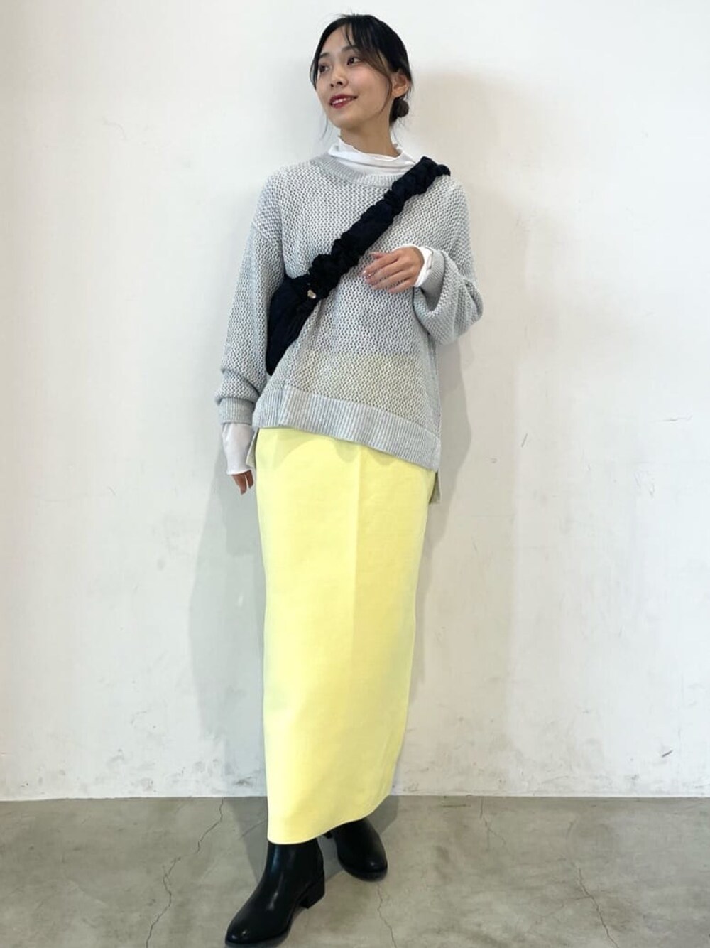 ゆうな 162cm 【サイズ感】 トップスはオーバーサイズになっている為、普段L着用の方もMサイズでも良いかもしれないです。後ろはヒップが隠れる長さになっているのでカバーもしっかりしてくれます! スカートはMサイズ着用(162cm)で少し長めに感じました。 【オススメポイント】 トップスは、今年トレンドのラメが入っているので1枚着るだけで流行を抑えられます♪後ろの方が長めなので、ヒップをカバーしてくれるのも嬉しいポイントです! スカートは、タイトですがそこまでラインを拾わないので着やすいです。後ろにスリットが入っているのでよりスッキリ見せてくれます♪ 【スタイリングポイント】 トップスのラメ感とスカートの色合いの組み合わせがお気に入りです♪