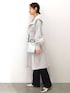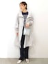Matsu 158cm 【サイズ感】 コートは、肩のラインが落ちたドロップショルダーです。袖幅が広く、ボリューム袖です。裾広がりのゆったりとしたシルエット。 ニットは、クルーネックです。肩のラインが落ちたドロップショルダーで、袖付けが広くゆったりとしたドルマンスリーブです。着丈に前後差があり、身幅にもゆとりのあるシルエット。 【素材感・着心地】 コートは、ポリエステル100%素材。生地にハリ感と光沢感があります。生地は薄手で、とても軽い着心地です。 ニットは、ポリエステル53%・レーヨン47%素材。生地はさらりとした肌触りです。 【おすすめポイント】 コートは、トレンドのドローストリングデザインを取り入れています。 ニットは、袖口のスリットとパールがさり気なく、手元を上品に彩ります。 【スタイリングのポイント】 コートにはフードがあり、スポーティーです。ニットはボーダー柄がカジュアルめに着こなせます。センタープレス入りのきれいめデニムと合わせてほどよいリラックス感を出しています。