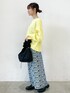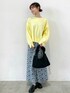 なつみ 155cm 明るいイエローカラーのショッピングコーデ♪ 【サイズ感】 ニット Mサイズでゆったりと着れるサイズ感です! 後ろはお尻に少しかかる程度で身頃はかなり余裕がありました! スカート Sサイズです。ウエストはジャストサイズでした。 やや細めの作りになっています。 【素材感・着心地】 ニットは程よい厚みがあります。 サラッと着れて着心地がとても楽です! 【おすすめポイント】 小花柄のスカートは多色使いなのでパッと目を惹くデザインになっています! 控えめなAラインシルエットで上品に仕上がります^^ 【スタイリングポイント】 春カラーを使ったスカートコーデ! 小物は黒で合わせてニットが主役のスタイリングにしました♪