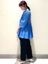 ユキ 152cm 1枚で完成ブラウス素材のドッキングニット♪ 切り替え位置がハイウエストで脚長効果◎ ヒップ太もも周りのカバーが優れているので、 下半身のボリュームが気になる骨格ウェーブの私も安心してパンツを履けました。 綺麗目ながらプリーツの揺れ感が華やかで春先に1枚で着たいデザインになってます。 袖がブラウス素材なのでアウターの中に着てもごわつかず今から春先まで長く活躍します◎ イエベ肌の私は、発色のいいブルーはあまり着ないのですが顔に近いニット部分がくすみブルーになっているので肌馴染みしてくれたのでしっくり着用出来ました♪