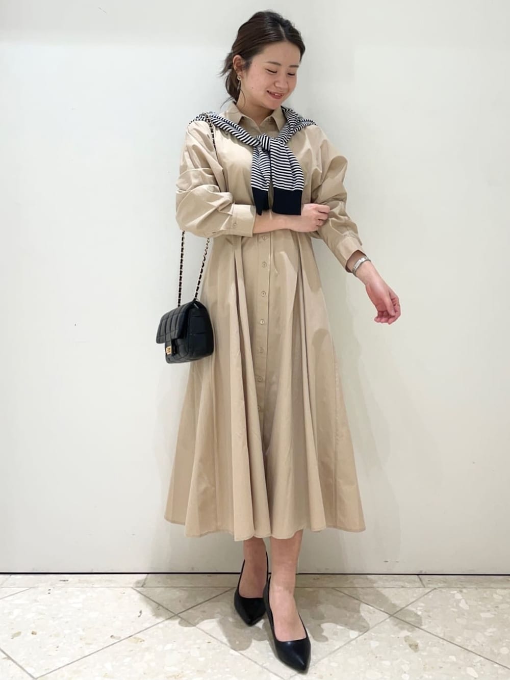 OPAQUE.CLIPスタッフ(OPAQUE.CLIP)のワンピース「◆フィット&フレアドルマンスリーブシャツワンピース【洗濯機洗い可】」を使ったコーディネート