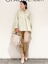 MIHO 154cm ---------------------------------------------- ☆春のブラウスコーデ☆ ---------------------------------------------- 《サイズ感》 トップス…Mサイズ着用で、腕周り、身頃もゆったりしたデザインです。 お袖はボリューム袖で、下ろした時とまくった時で見え方が変わります♪ 着丈は後ろが長めでお尻も隠れます。 パンツ…Sサイズ着用で、ウエストがゴム仕様で、ストレッチも効いているので楽に着れました! 154センチで丈感もピッタリでした☆ 《素材感・着心地》 トップス…綿とポリエステル混でハリ感のある、シャツ素材です。 シワになりにくく、お取り扱いもしやすいです♪ パンツ…柔らかくストレッチも効いているので、はき心地抜群です!! ウエスト総ゴムで楽ちんな着心地ながら、センタープレス入りで、きちんと見えします♪ 《おすすめポイント》 バックフリルがオシャレ見えするシャツブラウスは、一枚で華やかな印象になります! 隠したいお腹周りや腰周りもカバーしてくれます☆ これからの時期に嬉しいUVケア機能付きです♪ パンツは店頭でも大人気の定番美脚シリーズです! デイリーにもお仕事にも着回し抜群なので、 オススメです(^^) どちらもマシンウォッシャブルで、ご自宅でのお洗濯も楽ちんです! 《スタイリングポイント》 華やかなストライプシャツをメインに、 通勤や学校行事でも着れる様にベージュ系アイテムでシンプルにまとめました!