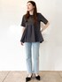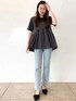 Risa 160cm 【サイズ感】トップス:Sサイズです。身幅はゆとりがあり着丈は長めでヒップまでカバーできます。ボトムス:Sサイズでピッタリです。 【着心地】トップス:シルクのような柔らかい肌触りです。身幅部分はシャツ素材でハリ感があり上品なイメージです。 【おすすめポイント】トップス:ペプラムデザインは毎年人気アイテムです。ボリュームは出るのでボトムスで合わすのがおすすめです! スカートであればタイトスカートがおすすめ! 【スタイリングのポイント】スッキリとする半袖のデザインなので夏場まで長く着用できます! デニムでカジュアルに着こなしてみました♪