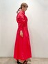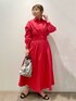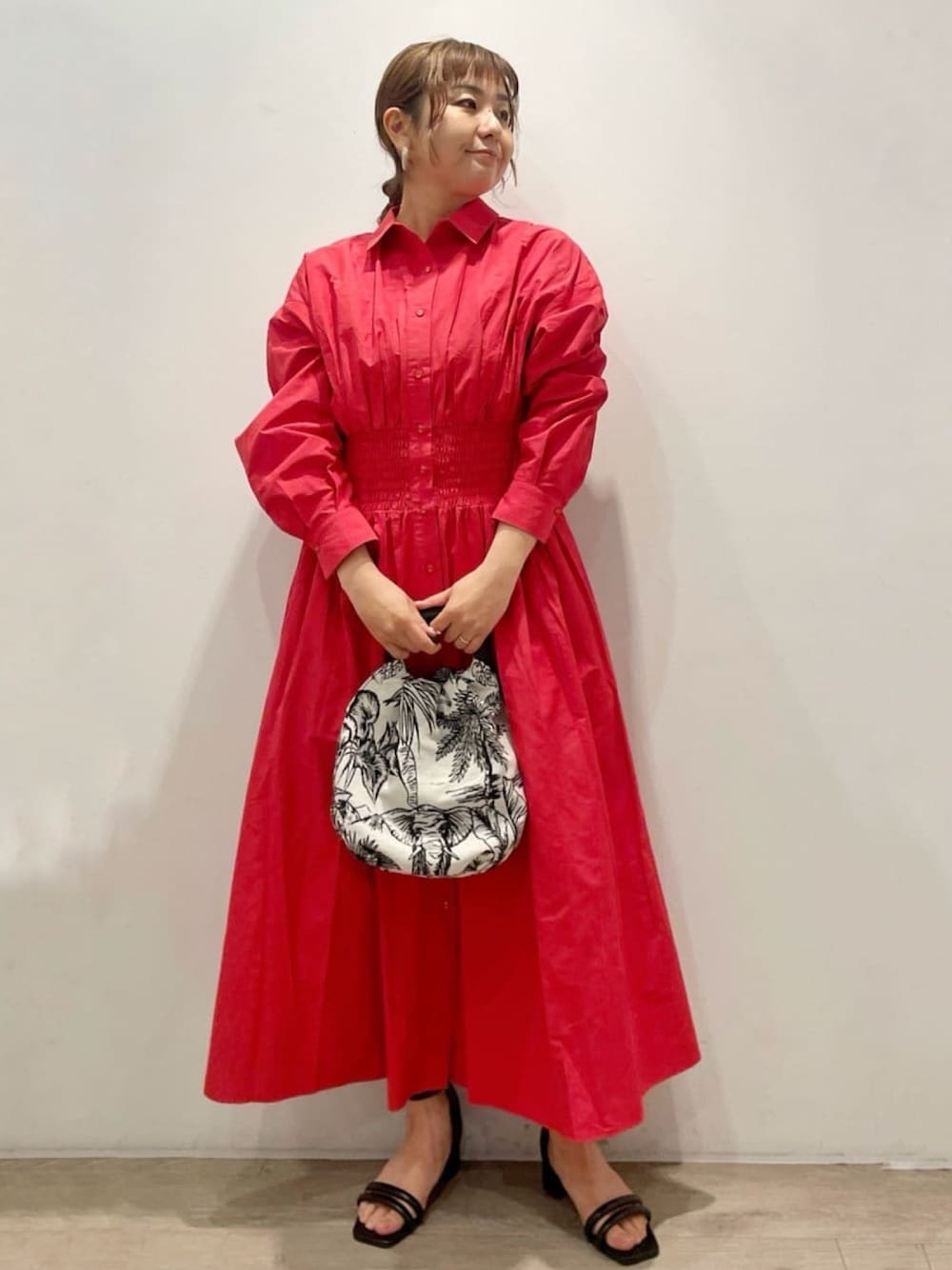 chiko 150cm 【スタイリングポイント】 ビビットな赤で気分が上がるシャツワンピース。 足元はサンダルで爽やかな印象に。 【おすすめポイント】 ウエストシャーリングの絞りの切り替えで、 ウエストが高くなり、スタイルがとても綺麗に見えます。 【サイズ感】 袖やバスト、スカート部分はゆったりとしています。 ウエストはシャーリングで絞りってありますが、キツすぎないので楽に着られます。 着丈は、150cmSサイズ着用で、足首あたりの丈感です。 【素材感・着心地】 生地感は柔らかく軽いので着やすいです。 透け感はあまり感じません。