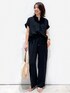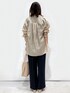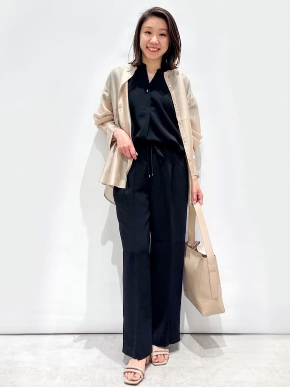 yuka.a 159cm 毎年大人気のスキッパーセットアップです^ ^!! 【サイズ感】 シャツ:Mサイズでもオーバーサイズに着用できるサイズ感です。 着丈も長めで、後ろはヒップが隠れる長さがありました。 トップス:Sサイズ着用 普段トップスはMサイズ着用が多いですが、こちらのブラウスはゆったりシルエットなので、Sサイズでもゆとりを持って着用できました。 パンツ:ストンとした広がりすぎないワイドシルエットです。 159cm・Sサイズ着用で丈は足の甲にかからないスッキリな長さでした。 フラットシューズ合わせでもまったく問題なく着用できます^ ^ 【素材感・着心地】 シャツ:ツヤ感のあるシアーな素材でトレンド感◎です! 軽やかな質感なので、羽織として着用した際も重たくならずにさらりとお召し頂けます^ ^ とてもキレイな生地でありながら、マシンウォッシャブル対応なのも嬉しいポイントです! トップス・パンツ:マットな質感の生地でお作りしていて高見えします^ ^! それでいてストレッチの効いた快適な着心地と、イージーケアが嬉しい機能性アイテムでもあります! 【おすすめポイント】 シャツ:リラクシーに着られるシアーシャツは、トップスとしても、羽織としても◎な、気軽にトレンドを取り入れる事ができるアイテムです! オーバーサイズで体型カバー◎ですが、生地が軽いので着られている感がなく、バランスも取りやすくなっています。 トップス:ボトムにインでもアウトでもバランス◎な、サイドスリット入りの前後差のある丈が着回し力を更に高めてくれます! 抜け感のあるブラウスなので、着るだけでこなれた印象に^ ^! パンツ:ストンとしたワイドストレートシルエットでセンタープレス入りと、美脚効果◎なパンツです^ ^! ウエストゴムでイージーな穿き心地で、キレイ見えと快適さのどちらも叶えてくれます^ ^! 【コーディネートのポイント】 セットアップコーディネートにシアーシャツをプラス! 羽織と小物のカラーを揃えて、大人らしいキレイめカジュアルな印象にコーディネートしました。