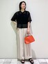 sachiko 174cm 【スタイリングポイント】 シアーシャツはブラックでも程よい透け感が夏にぴったり! ベージュの落ち感のあるパンツでラフなカジュアルスタイルに。 差し色のオレンジバッグがポイントです! 【おすすめポイント】 *シャツ 光沢感とシアー感が今年らしく夏に大活躍の1枚! 二の腕カバーの長さとすっきりバンドカラーが今年の夏重宝します◎ *パンツ 2タックデザインが今年らしい! 軽やかな素材感で夏のお出かけスタイルにぴったりです! 足のラインを拾わないワイドストレートシルエッがポイントです。 【着心地】 *シャツ さらっとしていてとても着やすいです! 汗ばむ夏の時季に嬉しいです。 *パンツ 後ろのウエスト部分がゴムになっているので 着心地も快適です。 【サイズ感】 *シャツ Lサイズでゆったりシルエットでした。 丈はすっきりとした長さです。 *パンツ Lサイズでウエスト周りは少し余裕がありました。 長めの丈感で高身長さんにもおすすめ! くるぶしにかかる長さでした。