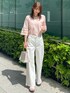 めぐ 166cm 【サイズ感】 Mサイズ着用。 ニットは肩、身幅ともにサイズちょうど良かったです! デニムは、ウエストちょうど良く長さもしっかり長めでした! 【着心地・素材感】 ニットはチクチクなどしないので、一枚でも大丈夫です!洗えるのも嬉しいポイントです◎ デニムはストレッチ性もあり、履きやすいかったです! 【オススメポイント】 ニットの袖のデザインが、かわいくアクセントになってます! デニムはシルエットも素敵で、着回し抜群です! 【スタイリングポイント】 白デニムに、ピンクのニットを合わせた春らしくしてます!
