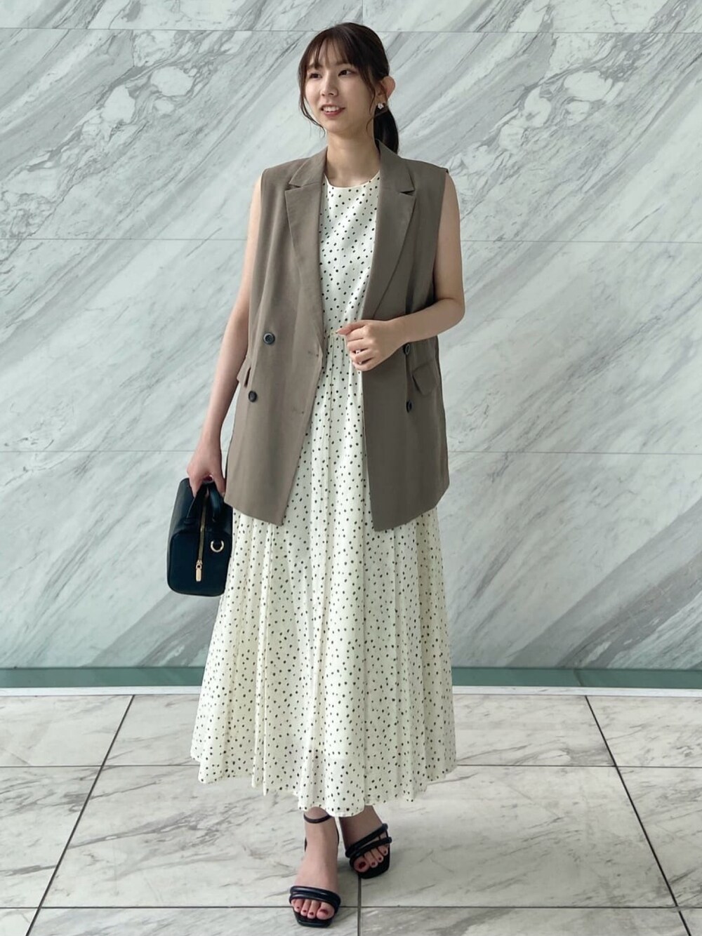 めぐ 166cm 【サイズ感】 Mサイズ着用。 ジレはやや長めが今年ぽくオシャレに着用できます!ワンピースは着丈も気にならないぐらい長めでした!ぺったんこの靴でも大丈夫です◎ 【着心地・素材感】 ワンピースはコットンなので着心地よく、柔らかい素材です! 【オススメポイント】 ジレはセットアップのパンツのご用意があるので是非チェックしてみてください! 【スタイリングポイント】 可愛くなりすぎちゃうワンピースに、ジレを羽織って大人綺麗にしてます! 通勤やデートなど色々な場面で活躍します!
