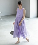 Yukari Anan 161cm [サイズ感] ワンピースMサイズ着用。窮屈感なく着れました。身長161㎝で足首くらいの丈の長さです。 [素材感・着心地] オーガニックコットン混みの綿を使用した、優しい柔らかな素材感。たっぷり入ったギャザーでふんわりと広がるスカート部分が可愛いです。着心地は軽くて動きやすいです。 [おすすめpoint♡] 一枚で存在感のあるワンピースです。ノースリーブなので、薄手のカーディガンも羽織りやすいです。 [スタイリングpoint♡] 綺麗なパープルが映えるように、コーデに足すアイテムはホワイトとシルバーで纏めました。