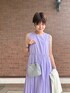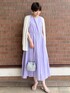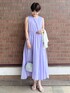 Yukari Anan 161cm [サイズ感] ワンピースMサイズ着用。窮屈感なく着れました。身長161㎝で足首くらいの丈の長さです。 [素材感・着心地] オーガニックコットン混みの綿を使用した、優しい柔らかな素材感。たっぷり入ったギャザーでふんわりと広がるスカート部分が可愛いです。着心地は軽くて動きやすいです。 [おすすめpoint♡] 一枚で存在感のあるワンピースです。ノースリーブなので、薄手のカーディガンも羽織りやすいです。 [スタイリングpoint♡] 綺麗なパープルが映えるように、コーデに足すアイテムはホワイトとシルバーで纏めました。